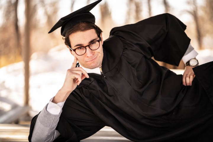 Who said a photoshoot has to be serious? Not this college grad!